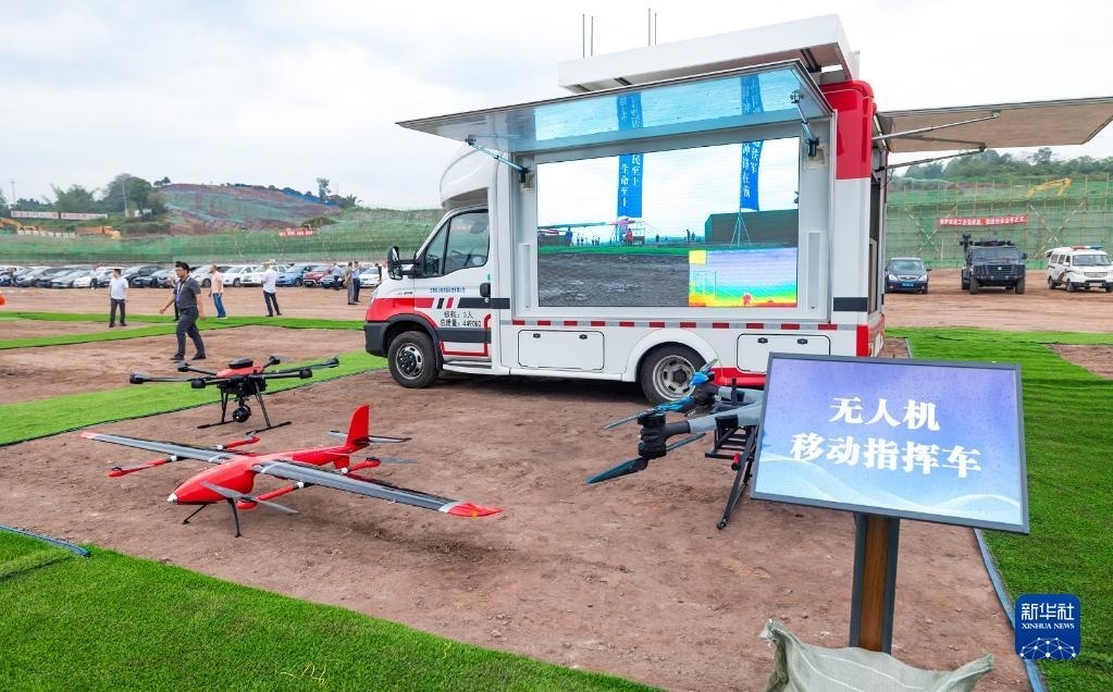 這是演練現(xiàn)場(chǎng)展示的無人機(jī)移動(dòng)指揮車(6月14日攝)。