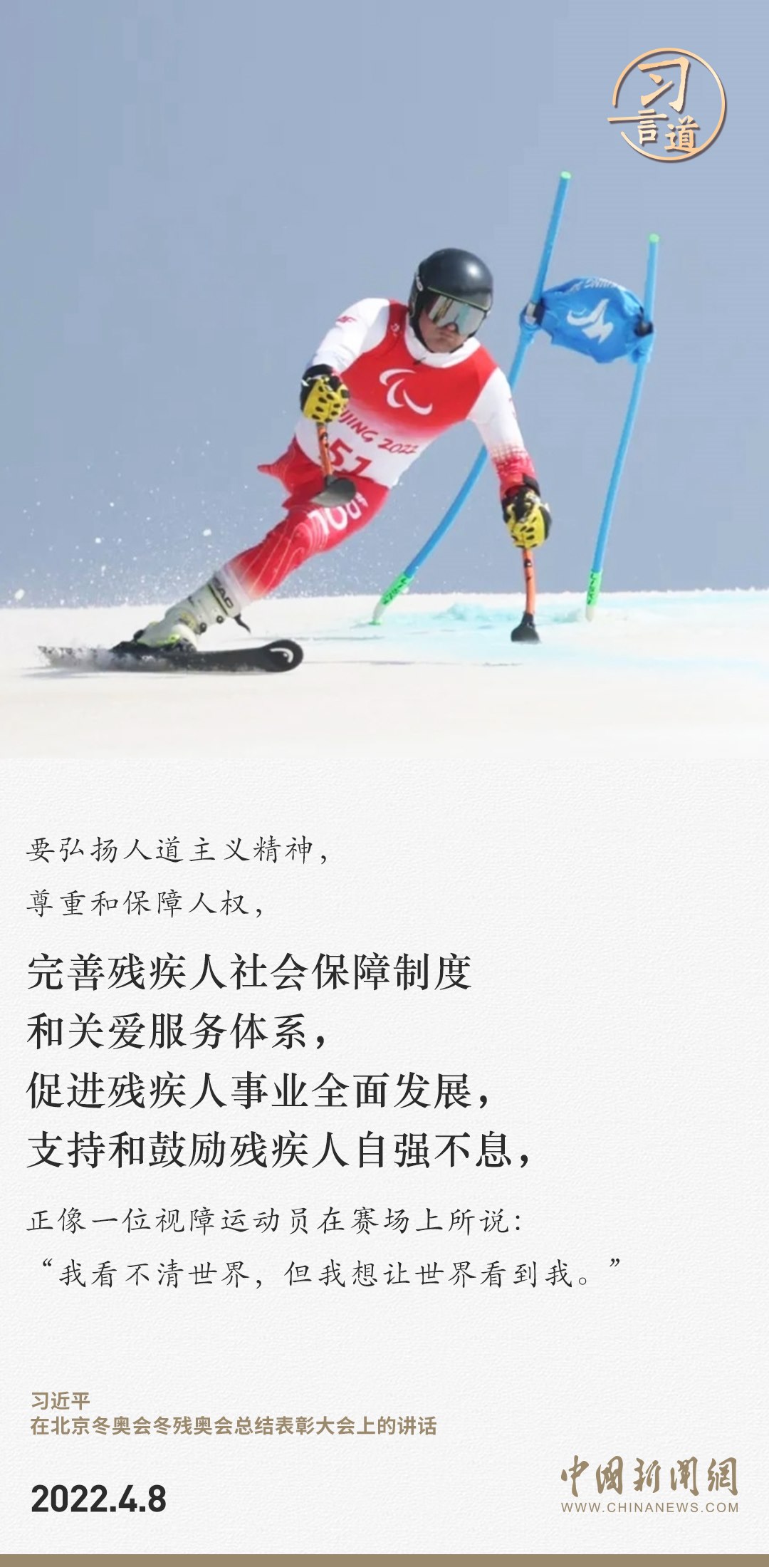 殘疾人是一個(gè)特殊困難的群體,需要格外關(guān)心、格外關(guān)注。習(xí)近平總書記十分重視完善殘疾人社會(huì)保障制度和關(guān)愛(ài)服務(wù)體系,促進(jìn)殘疾人事業(yè)全面發(fā)展,支持和鼓勵(lì)殘疾人努力創(chuàng)造無(wú)愧于時(shí)代的精彩人生。