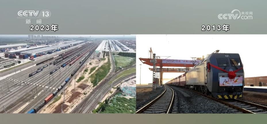 幾百輛剛出廠的新能源汽車整齊地排列在站臺上陸續(xù)裝箱,馬上它們將乘坐中歐班列“長安號”前往中亞。2023年是“一帶一路”倡議提出10周年,也是中歐班列“長安號”開行10周年。每天都有數以億計的貨物在這里集散。