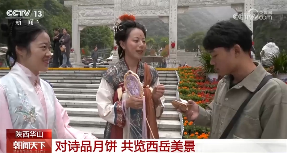 陜西華山:對(duì)詩(shī)品月餅 共覽西岳美景