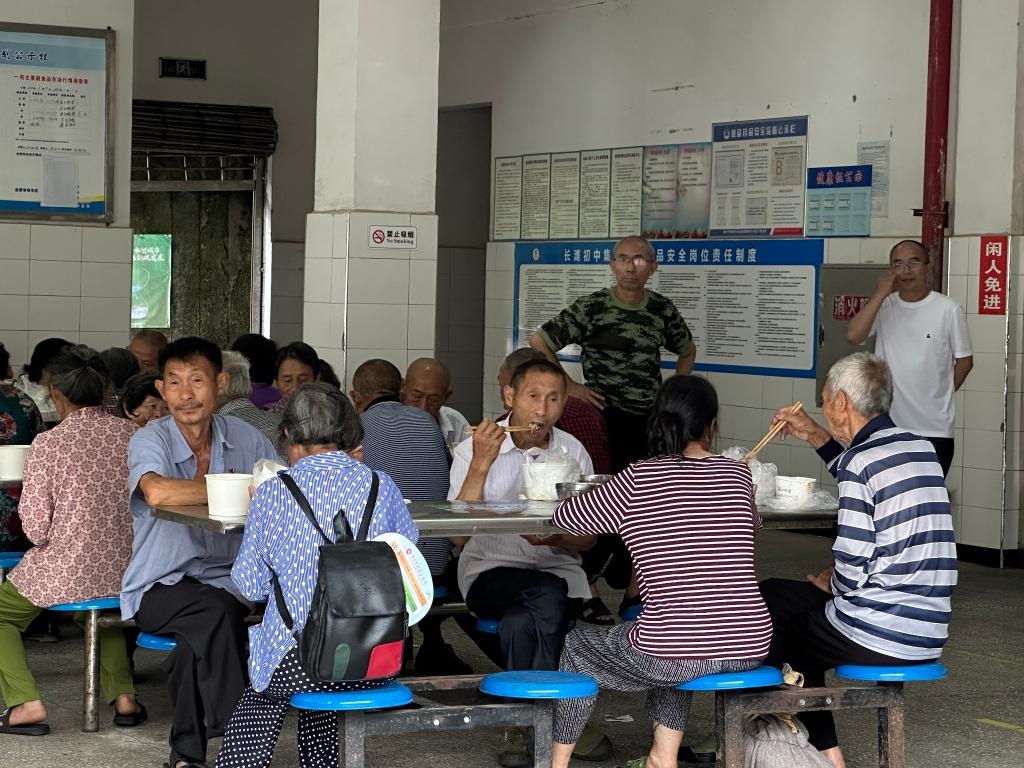 長灘初級中學(xué)安置點(diǎn)群眾正在用午飯。新華社記者李曉婷 攝