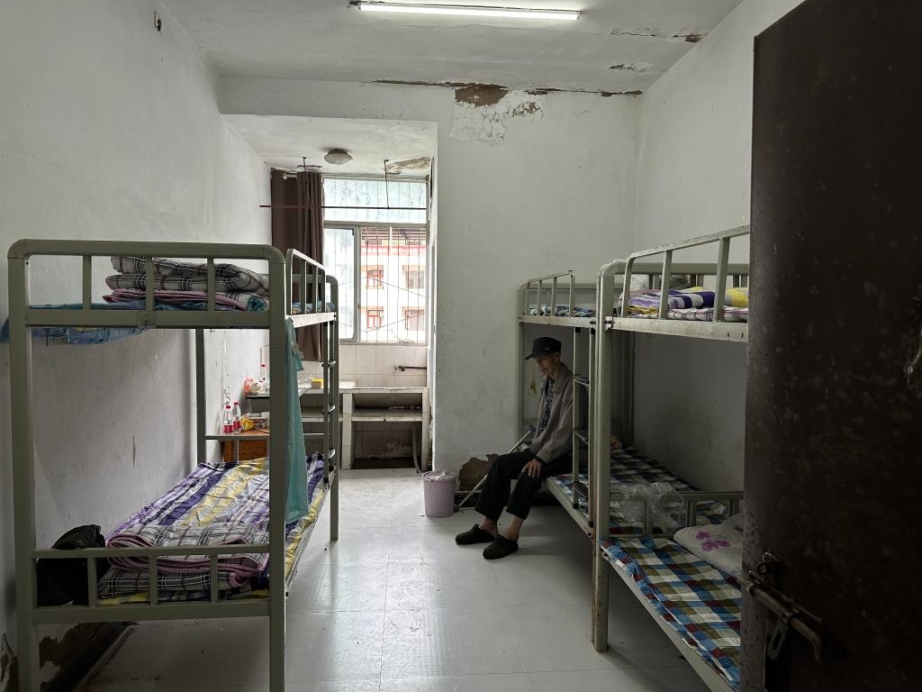 太白西村4組村民譚建和老爺爺行動不便,坐在鋪著干凈格子床單的宿舍床上望向窗外。“前天下午,社區(qū)的車來接的我和老伴,安置點(diǎn)吃喝都好,宿舍住起來也挺舒服。兒子們擔(dān)心我,他們過不來,一天就打好幾通電話,我說都好著呢、好著呢?!弊T爺爺說。