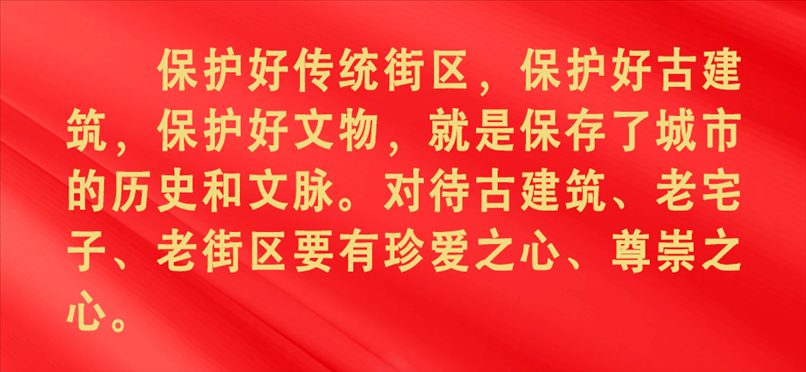 歷史文化是城市的靈魂,一個城市的歷史遺跡、文化古跡、人文底蘊,是城市生命的一部分。習(xí)近平總書記多次考察調(diào)研老城建筑和文化街區(qū),對傳承保護城市歷史文化遺產(chǎn)作出重要指示。