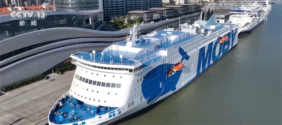 中國(guó)船舶廣船國(guó)際生產(chǎn)管理中心 建造經(jīng)理 王永剛:這艘船就是我們?cè)诮ǖ暮廊A客滾船,這是目前世界上最大的,交付給意大利船東。