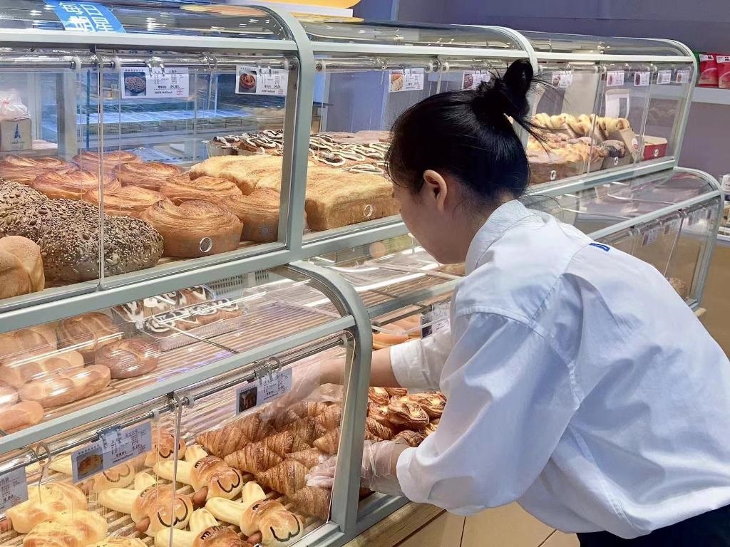 山西太原一家面包門(mén)店的員工正在整理烘焙鮮食。(受訪單位供圖)