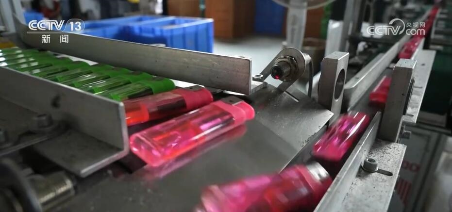 這家企業(yè)是第一批入駐產(chǎn)業(yè)園的企業(yè),目前日產(chǎn)打火機(jī)150萬(wàn)只。記者發(fā)現(xiàn),這里的每道生產(chǎn)工序中都能看到自動(dòng)化設(shè)備的身影。在質(zhì)檢環(huán)節(jié),廠家正在用機(jī)器視覺(jué)技術(shù)給打火機(jī)“做體檢”,看火苗高度是否符合出廠要求。