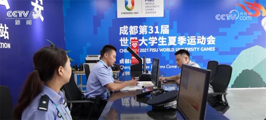 成都市公安局出入境管理局外國人管理大隊三級警長 王珂:我們在大運村設(shè)立這個警務(wù)站,主要是為了給各國代表團、運動員和村里的工作人員提供安全服務(wù),同時也能提供護照報失登記、簽證咨詢等服務(wù),便于代表團成員后續(xù)辦理相關(guān)證件。