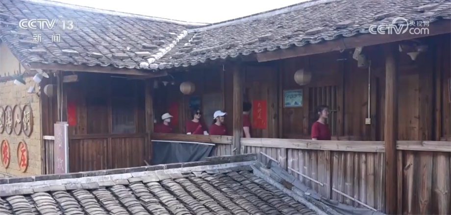 總臺央視記者 陳燁煒:我身后的這棟樓已經(jīng)有100多年的歷史,鵝卵石鋪成的小院、青磚砌成的外墻以及木質(zhì)結(jié)構(gòu)的房屋,處處在向我們傳遞著古老的文化氣息,多年前這里曾經(jīng)是當(dāng)?shù)鼐用窬幼〉姆课荩鼛啄杲?jīng)過改造后,已經(jīng)成了很多外地游客慕名前來的網(wǎng)紅打卡地。