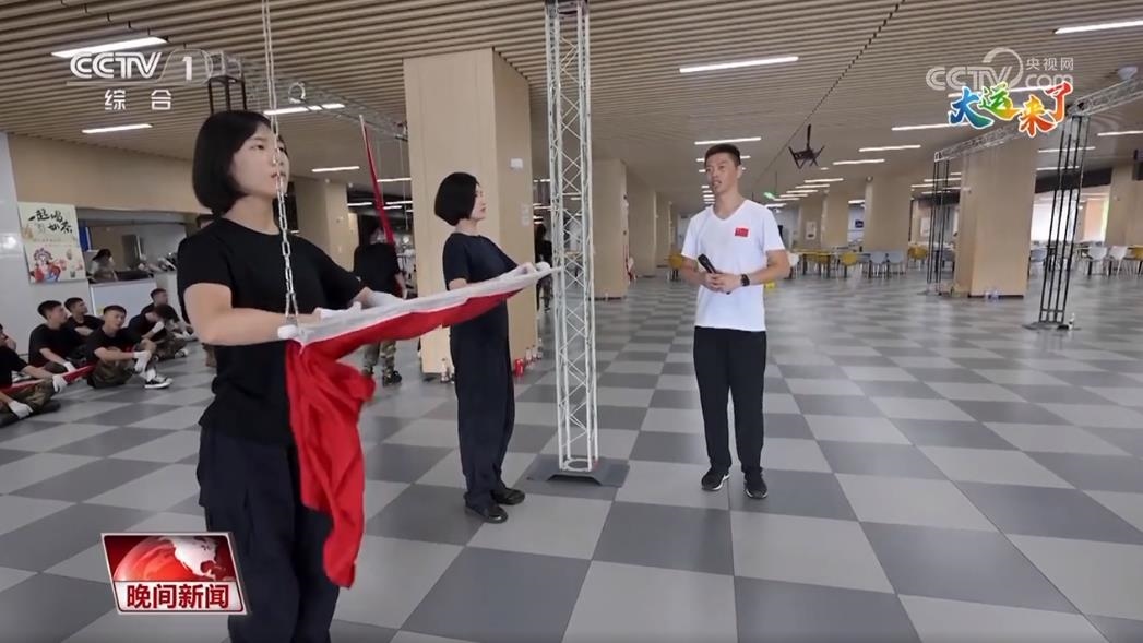央視網(wǎng)消息:大運會開幕日益臨近,頒獎儀式升旗手的訓(xùn)練也進(jìn)入最后沖刺階段。這是一群由在校大學(xué)生組成的升旗手團(tuán)隊,每天面對國旗,他們都在為展現(xiàn)出大學(xué)生的最佳風(fēng)貌而全力以赴。今天,我們就走近這群可愛的大學(xué)生升旗手們。