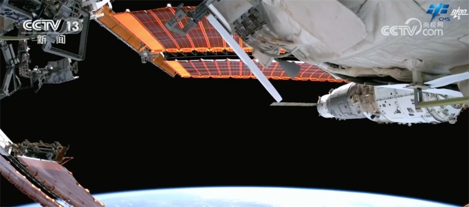 7月20日,神舟十六號航天員景海鵬、朱楊柱、桂海潮密切協(xié)同,在空間站機械臂支持下,圓滿完成出艙活動。出艙期間,完成了核心艙全景相機B在軌支架安裝及抬升、夢天艙全景相機A和B解鎖及抬升等任務,我們現(xiàn)在看到的就是相機抬升后所拍到的畫面。