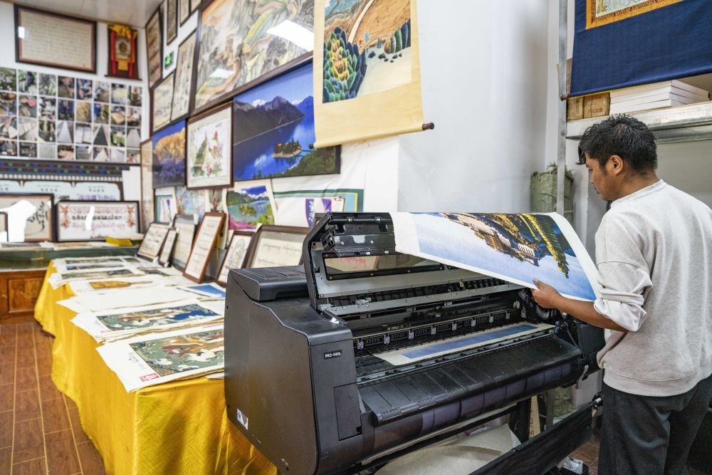 ? ? ? 為了讓村民安居樂業(yè),當(dāng)?shù)爻闪⒘四襄劝屯咄莞虏脊に嚻忿r(nóng)民專業(yè)合作社,集藏紙生產(chǎn)、旅游參觀體驗為一體,通過創(chuàng)新生產(chǎn)藏紙印刷產(chǎn)品等方式,讓30余名村民在家門口實現(xiàn)穩(wěn)定就業(yè)。據(jù)了解,該合作社2022年全年銷售額超過200萬元。
