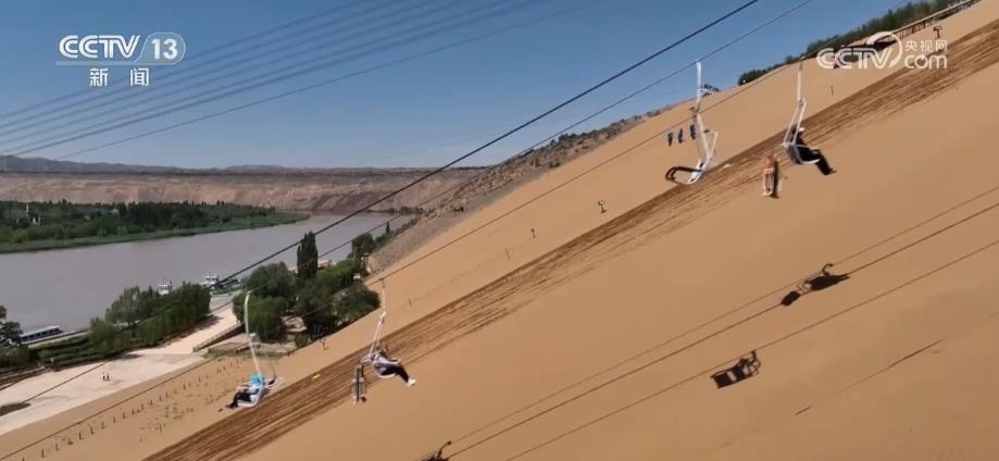 寧夏中衛(wèi)沙坡頭景區(qū),沙丘縱橫、連綿起伏,黃河、綠洲、高山和沙漠都在此相遇。眾多游客在這里體驗沙漠沖浪、騎行、滑沙等項目,感受大漠馳騁的速度與激情。