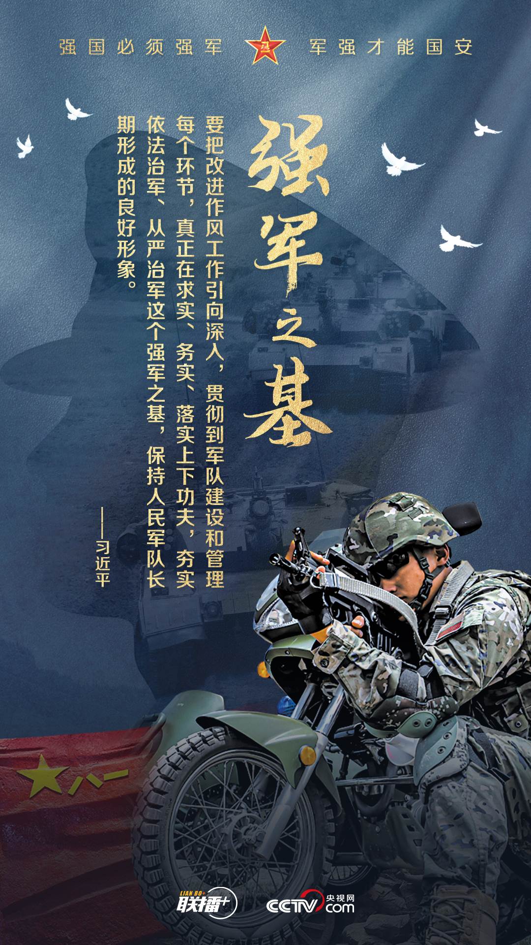黨的十八大以來,習(xí)近平主席始終高度重視國防和軍隊建設(shè),為全軍擘畫強(qiáng)軍興軍藍(lán)圖、指引奮進(jìn)方向。值此中國人民解放軍建軍96周年之際,央視網(wǎng)《聯(lián)播+》欄目制作強(qiáng)軍海報,與您一起學(xué)習(xí)習(xí)主席的強(qiáng)軍思想。