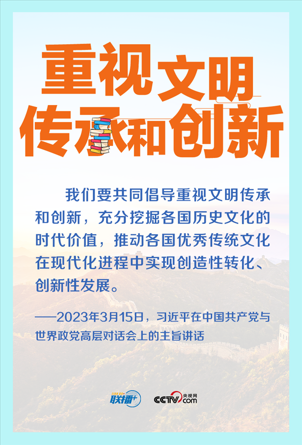重視文明傳承和創(chuàng)新,是文明交流互鑒的動(dòng)力源泉。2023年年初,習(xí)近平總書(shū)記在中國(guó)共產(chǎn)黨與世界政黨高層對(duì)話會(huì)上首次提出全球文明倡議,這是繼全球發(fā)展倡議、全球安全倡議后,新時(shí)代中國(guó)為國(guó)際社會(huì)提供的新的國(guó)際公共產(chǎn)品。