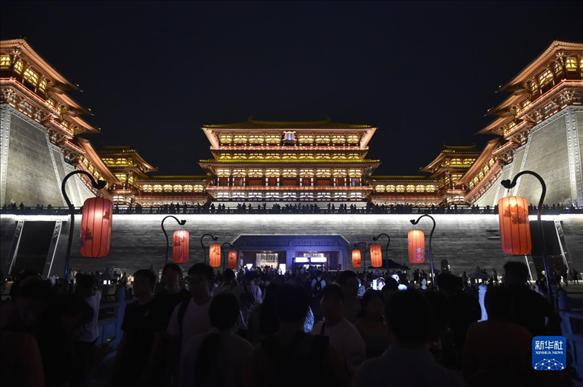 夏夜時(shí)分,河南省洛陽(yáng)市隋唐洛陽(yáng)城國(guó)家遺址公園應(yīng)天門(mén)遺址博物館燈火輝煌,熱鬧非凡,滿目的人間煙火再現(xiàn)千年古都繁華盛景。