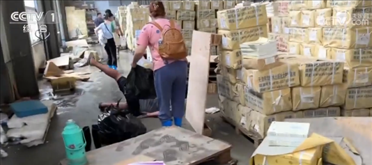 總臺(tái)記者 莊勝春:像這種書,對(duì)于他們來(lái)說,就需要把里邊的氣都擠出來(lái),然后再往上摞,這樣可以保證它不會(huì)滑倒,清理的效率能高一點(diǎn)。這樣,抓緊清理完再消毒,也可以保護(hù)剩下這些沒有被泡的書。