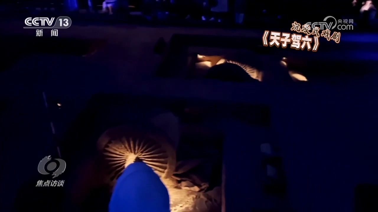 慕順興就是本地人,劇場開業(yè)后,他第一次來就被吸引住了,于是辦了年卡,不光自己看戲,還經(jīng)常給游客推薦劇目,《天子駕六》就是他經(jīng)常推薦的劇。劇場里沒有舞臺(tái),也沒有座位,觀眾們在逼真的考古現(xiàn)場圍圈站定。