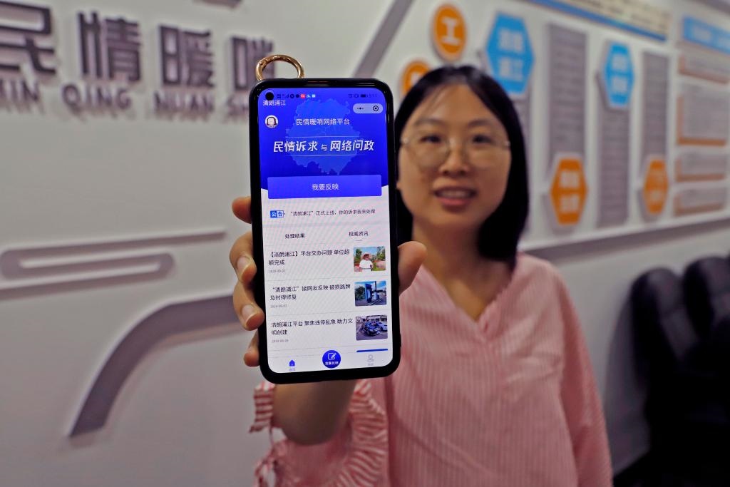 浦江市民通過“民情暖哨”網(wǎng)絡平臺反映訴求并進行平臺首頁展示。(方黎晨 攝)