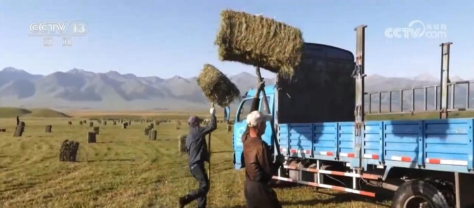 央視網(wǎng)消息:每年八九月,是新疆各地草原的打草季節(jié)。眼下,伊犁新源縣境內(nèi)的那拉提草原已全面進入牧草收割季,這里的牧民們都在忙著儲備牲畜的過冬飼料。