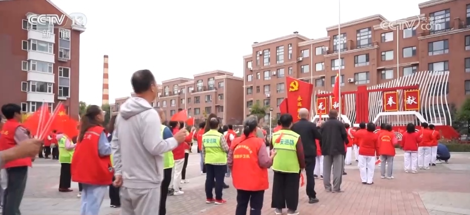 國慶假期,早上8時(shí),小區(qū)升旗儀式準(zhǔn)時(shí)開始。