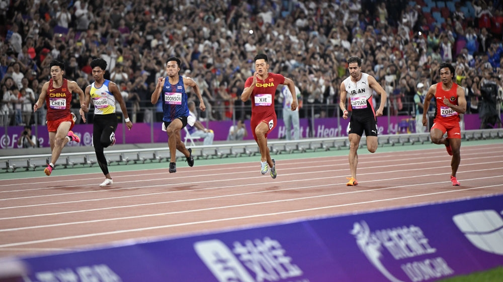 率先進(jìn)行的女子100米決賽中,面對曾經(jīng)在今年亞錦賽上戰(zhàn)勝過自己的新加坡名將佩雷拉,扎著“哪吒頭”的葛曼棋頂住壓力,憑借強(qiáng)有力的沖刺以11秒23率先撞線。隨后的男子決賽,名將謝震業(yè)戰(zhàn)勝了對手,也戰(zhàn)勝了自己。9秒97的奪冠成績是他繼2018年之后,時隔5年再次突破10秒大關(guān)。雖然2.4米每秒的順風(fēng)風(fēng)速讓他的成績不能被計為達(dá)標(biāo)巴黎奧運(yùn)會的有效成績,但謝震業(yè)賽后表示,雖然超了風(fēng)速,但是成績就在這里,戰(zhàn)勝了自己心里就沒有遺憾。