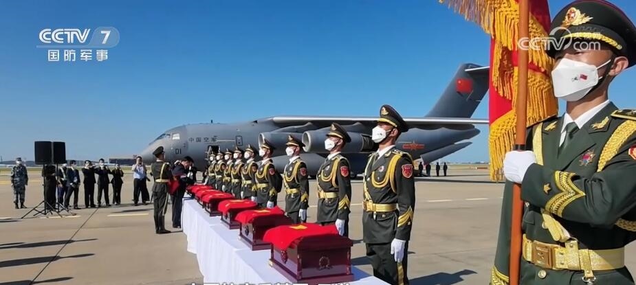 空軍航空兵某團 孟洋:當(dāng)時在儀式的現(xiàn)場,我們機組成員是列隊在飛機的后艙位置,準備迎接烈士遺骸上飛機。當(dāng)儀仗隊隊員緩緩地將棺槨搬上飛機的那一刻,我看著一面面國旗覆蓋在棺槨上,直到那一刻,我才更加深刻地理解我們國旗的顏色是由無數(shù)革命先烈鮮血染成的。