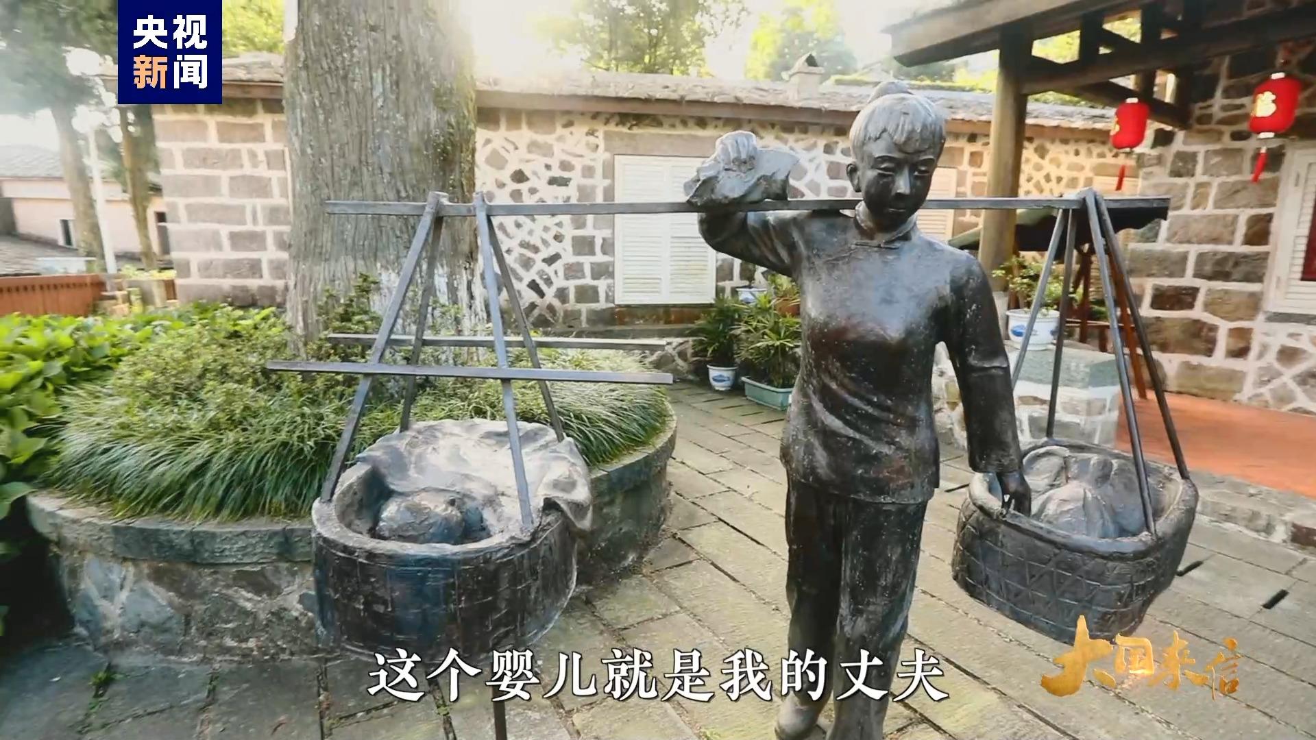 “鼓嶺之友”發(fā)起人 穆言靈:這個(gè)籃子里有個(gè)嬰兒,這個(gè)嬰兒就是我的丈夫,因?yàn)楫?dāng)他第一次來(lái)到鼓嶺的時(shí)候,一位鼓嶺“媽媽”把他背到了山上,家人們都相信她能把他照顧得很好。這座雕像不僅重現(xiàn)了當(dāng)年我丈夫一路上山的情景,也記錄了這些鼓嶺的朋友們,當(dāng)年他們?cè)疹欉@里的外國(guó)朋友,像家人一樣對(duì)待他們。