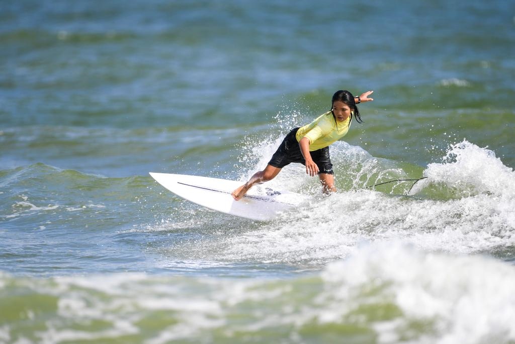 7月12日,第一屆全國學(xué)生(青年)運(yùn)動會沖浪項目女子短板決賽在廣西北海市舉行。新華社記者 曹祎銘 攝