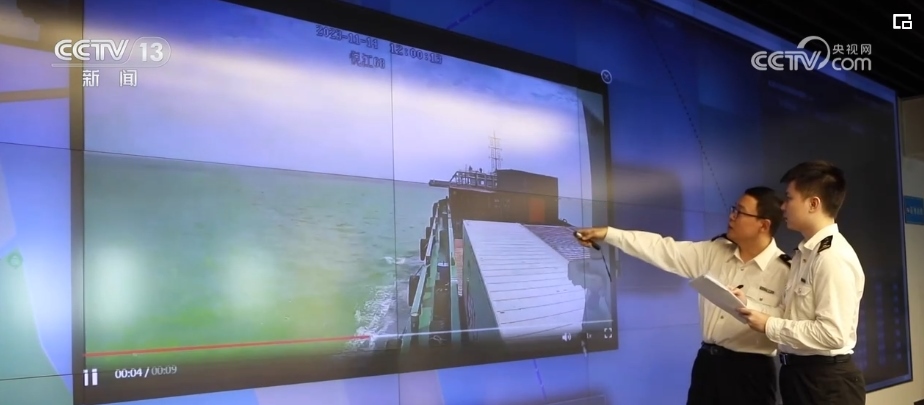 在深圳海關(guān),關(guān)員們正在通過系統(tǒng)實時查看裝載“大灣區(qū)組合港”貨物的駁船途中運輸情況。系統(tǒng)接入了多方數(shù)據(jù),能夠?qū)崿F(xiàn)組合港貨物全流程“數(shù)據(jù)流、軌跡流、視頻流”管控,以“制度+科技”加強“大灣區(qū)組合港”這一創(chuàng)新改革項目的監(jiān)管手段。