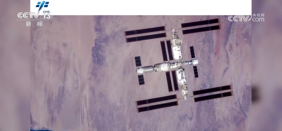 撤離后,神舟十六號(hào)乘組在返回地面前,航天員手持高清相機(jī)通過飛船繞飛拍攝了空間站組合體。這是在軌首次獲取的以地球?yàn)楸尘暗闹袊?guó)空間站全貌圖像,也是第一組反映空間站全構(gòu)型的工作照。