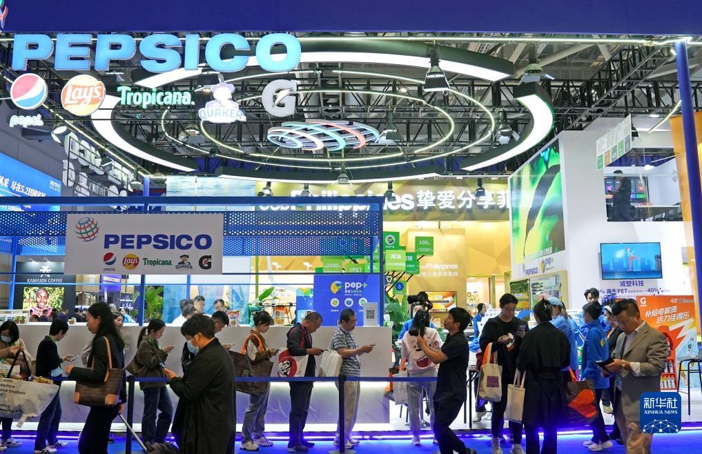 2023年11月8日在第六屆進博會食品及農產品展區(qū)拍攝的百事公司展臺。今年是百事公司首次參展進博會。新華社記者 劉穎 攝