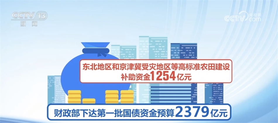 據介紹,根據工作機制確定的第一批2900多個項目,財政部已經下達第一批國債資金預算2379億元,其中,災后恢復重建和提升防災減災能力補助資金1075億元、東北地區(qū)和京津冀受災地區(qū)等高標準農田建設補助資金1254億元、重點自然災害綜合防治體系建設工程補助資金(氣象基礎設施項目建設)50億元。