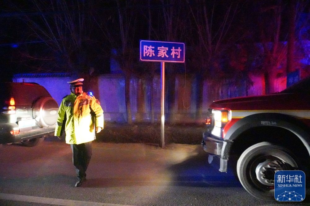 12月19日,在甘肅省臨夏回族自治州積石山保安族東鄉(xiāng)族撒拉族自治縣大河家鎮(zhèn)陳家村,一名交警指揮救援車(chē)輛進(jìn)入救援現(xiàn)場(chǎng)。新華社記者 馬希平 攝
