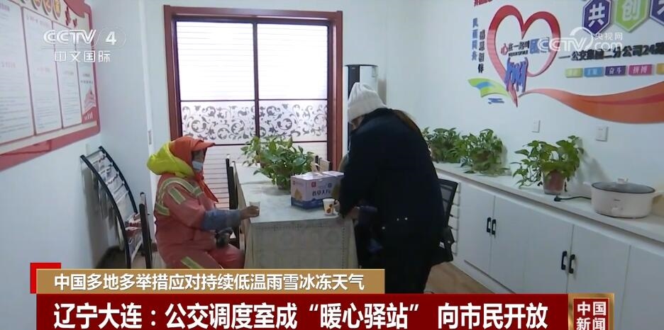 在遼寧大連,嚴寒天氣下,一些臨近居民區(qū)、菜市場、商業(yè)區(qū)的公交調度室臨時向市民開放,供路過市民歇腳、暖身。