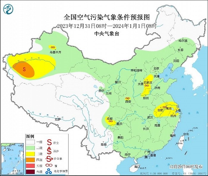 央視網(wǎng)消息:據(jù)中央氣象臺網(wǎng)站消息,12月29日早晨,中央氣象臺將大霧預(yù)警升級為最高等級的紅色,這也是今年首次發(fā)布大霧紅色預(yù)警。氣象監(jiān)測顯示,今晨,內(nèi)蒙古中部、寧夏北部、陜西、山西、河北中南部、天津、山東、河南、蘇皖中南部、浙江北部和西部、江西北部、湖北、湖南及四川盆地等地出現(xiàn)輕度到中度污染,部分地區(qū)重度污染;上述部分地區(qū)出現(xiàn)能見度不足1千米的大霧,其中河北、山東、安徽、江蘇、浙江及上海等局地能見度不足200米。今天早晨至上午時段,四川盆地至黃淮、江淮一帶的大霧天氣仍會持續(xù)。