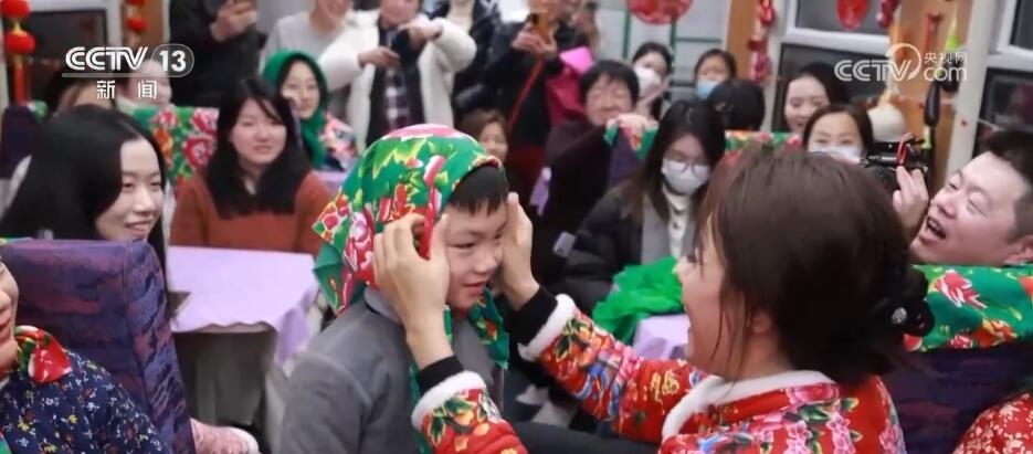 總臺(tái)央視記者 楊曜語(yǔ):一上車(chē),我就被濃濃的東北文化所感染到了,整個(gè)車(chē)廂都被東北大花的經(jīng)典配色裝飾著,再加上隨手就能品嘗到的特色美食,坐在床鋪上就感覺(jué)一秒鐘“穿越”到農(nóng)家炕頭。跟著游客,我現(xiàn)在到了一節(jié)互動(dòng)車(chē)廂,這里被布置成“跨年狂歡”的主題場(chǎng)景,在這里游客可以參與剪窗花、包餃子、穿東北大花襖一系列特色活動(dòng),現(xiàn)在就有很多游客在這里打卡拍照。