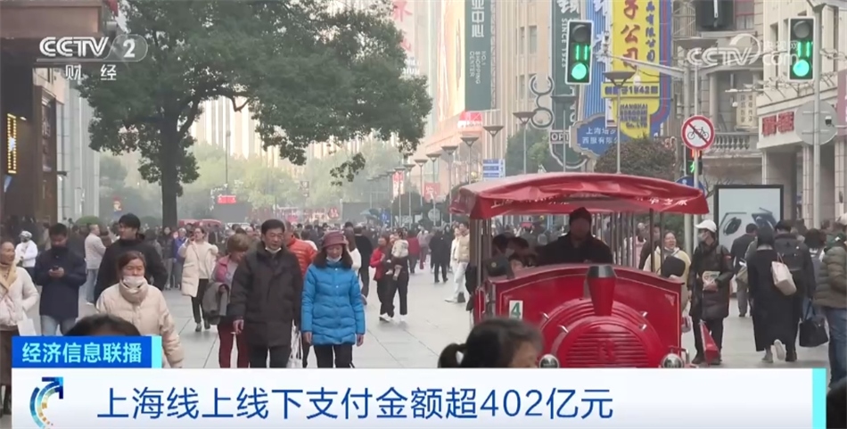 上海市商務委數(shù)據顯示,元旦假期期間,上海全市線下消費支付金額255.6億元,比去年節(jié)日同期增長38.7%,線上消費支付金額147.1億元,比去年節(jié)日同期增長7.8%。監(jiān)測上海全市35個重點商圈的線下客流總量超過了1500萬人次。