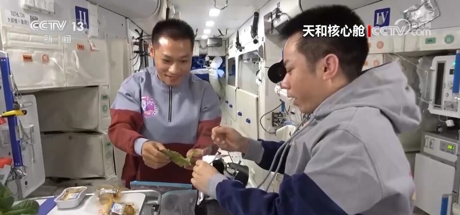 航天員 唐勝杰:謝謝,這是我們太空獨特的吃飯的方式。