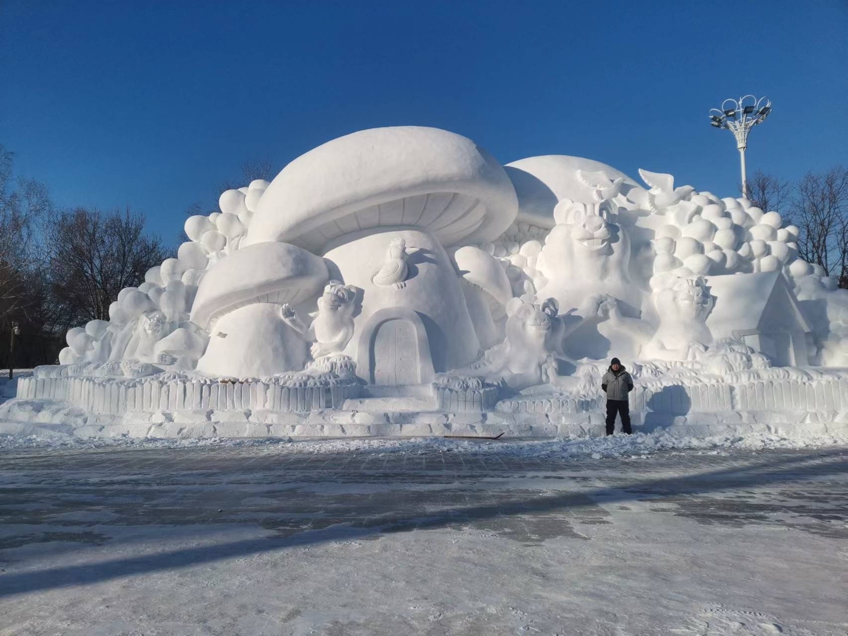 經(jīng)過(guò)一天雕刻即將完成的雪雕