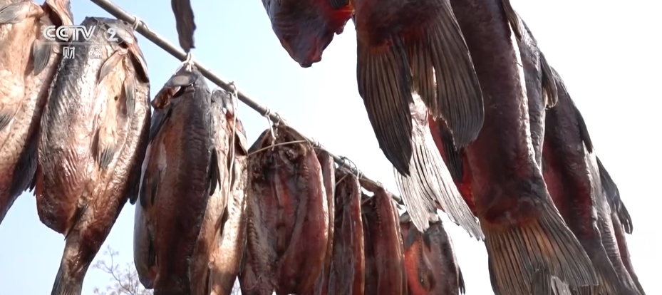 天氣晴好,陽澄湖邊的店家們紛紛曬出各種咸貨,年味兒撲面而來。其中,地產的大青魚是年貨中的重頭戲。