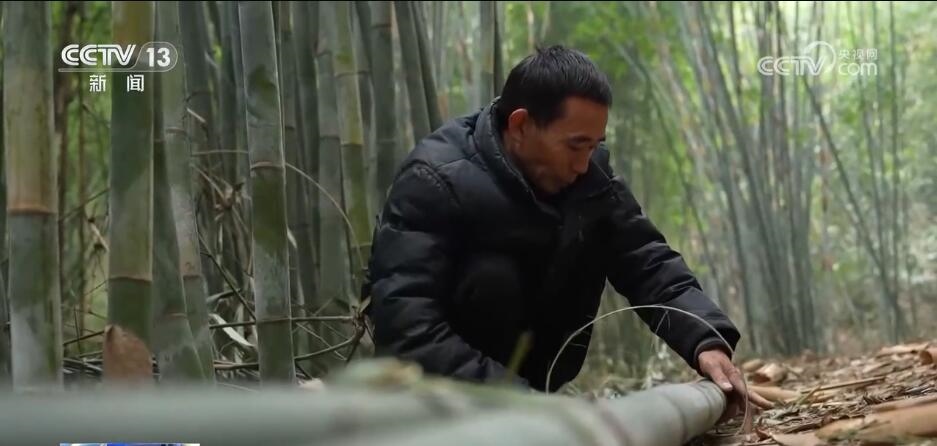 這些竹燈籠的原材料竹子全都來自青神縣本地。青神縣地處丘陵,群山環(huán)抱滋養(yǎng)了數十萬畝竹林。這幾天,在青神縣海拔最高的天池村,漫山翠竹正值收獲季,種植戶們正抓緊采收新鮮的竹子。