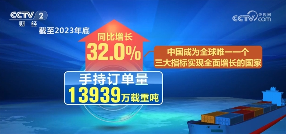 最新數(shù)據(jù)顯示,2023年我國造船完工量4232萬載重噸,同比增長11.8%;新承接訂單量7120萬載重噸,同比增長56.4%;截至2023年底,手持訂單量13939萬載重噸,同比增長32.0%,所有指標(biāo)第一次實現(xiàn)2位數(shù)增長。