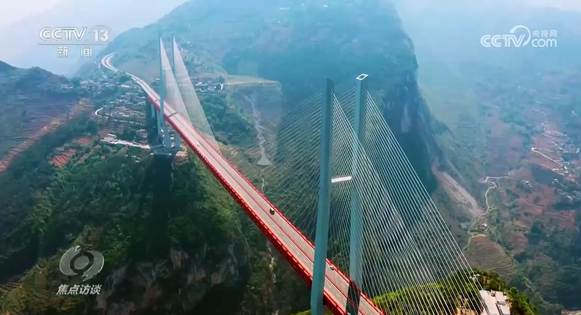 杭瑞高速貴州段,北盤江第一橋,擁有565米的高度和720米的主跨。建造時,主跨被拆分成60個160噸重的節(jié)段,需要在近600米高空進行拼接、合龍。