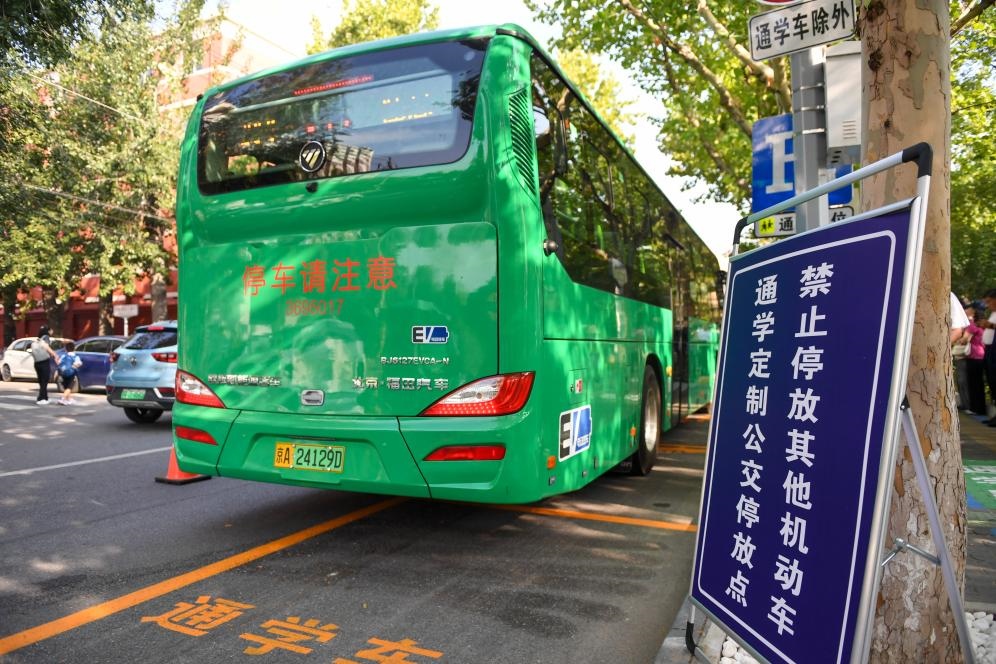 2023年9月1日北京推出通學(xué)公交車服務(wù)(2023年9月1日攝)。新華社記者 鞠煥宗 攝