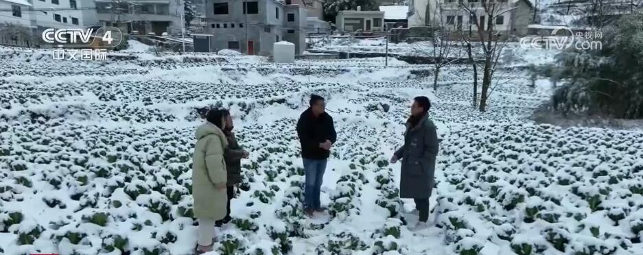 在貴州畢節(jié)螺絲村蔬菜基地,田間地頭白茫茫一片。為應(yīng)對低溫凝凍天氣,當?shù)剞r(nóng)技人員現(xiàn)場查看蔬菜長勢,為農(nóng)戶講解蔬菜防凍知識,指導做好防寒抗凍措施。
