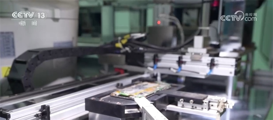 手機(jī)自動(dòng)化回收企業(yè)負(fù)責(zé)人 李燦康:在不拆機(jī)的情況下,檢測(cè)手機(jī)內(nèi)部是否有維修情況,檢測(cè)效率從進(jìn)到出只需要7—8秒。