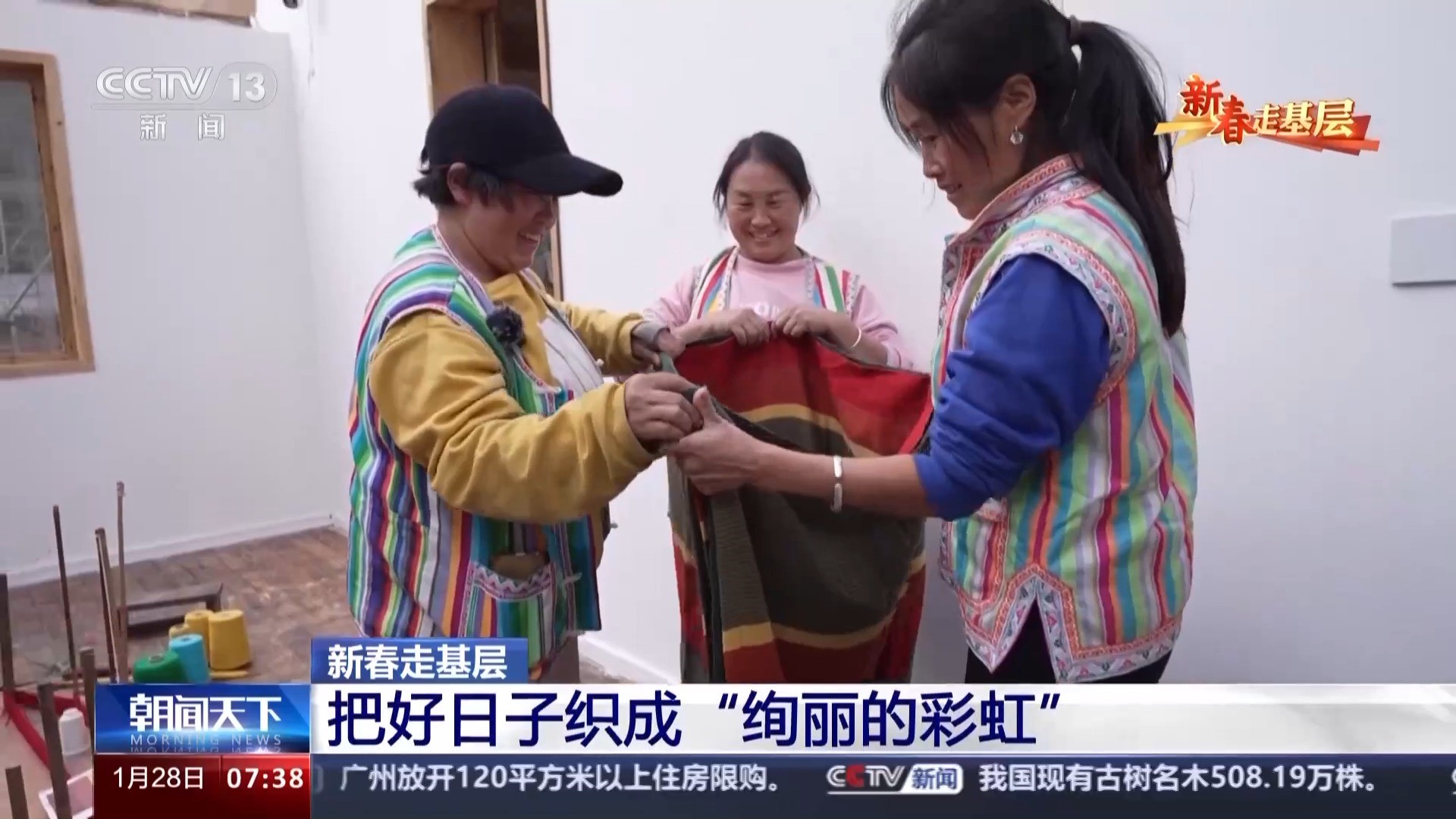 在獨(dú)龍江鄉(xiāng),記者見到了34歲的獨(dú)龍族婦女碧玉花,她和姐妹們春節(jié)前,要為客戶趕制一批獨(dú)龍?zhí)?。紗線剛剛運(yùn)來,她們就迫不及待地趕往河對岸的工作室。