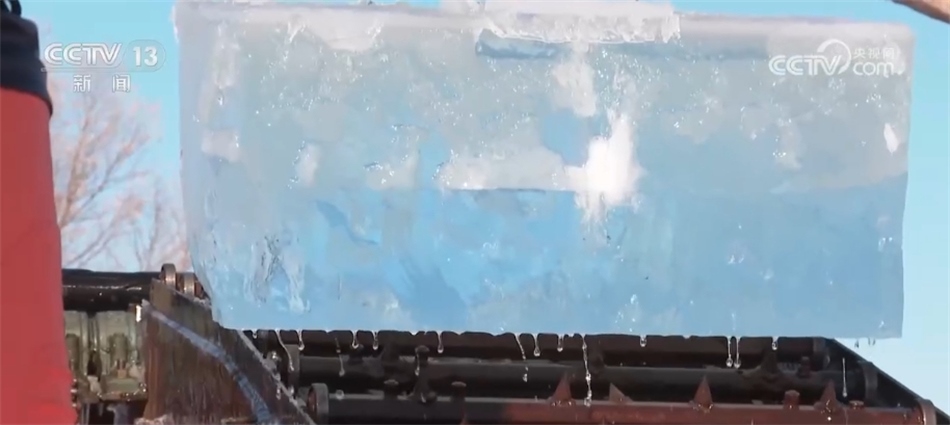 看冰燈、玩超長冰滑梯、和萬人在冰天雪地熱舞,眼下的哈爾濱冰雪大世界堪稱歡樂的海洋。此時,同樣熱鬧的還有松花江的冰面上,機器轟鳴、冰花飛濺,一塊塊晶瑩剔透的冰被拖出水面,裝車送往存冰場。