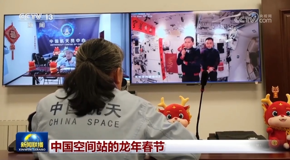 央視網(wǎng)消息(新聞聯(lián)播):龍騰九州、春暖人間,在距離地球約400公里的中國空間站,正在“太空出差”的神舟十七號航天員乘組日程過半,3名航天員在“太空家園”里歡樂過年。