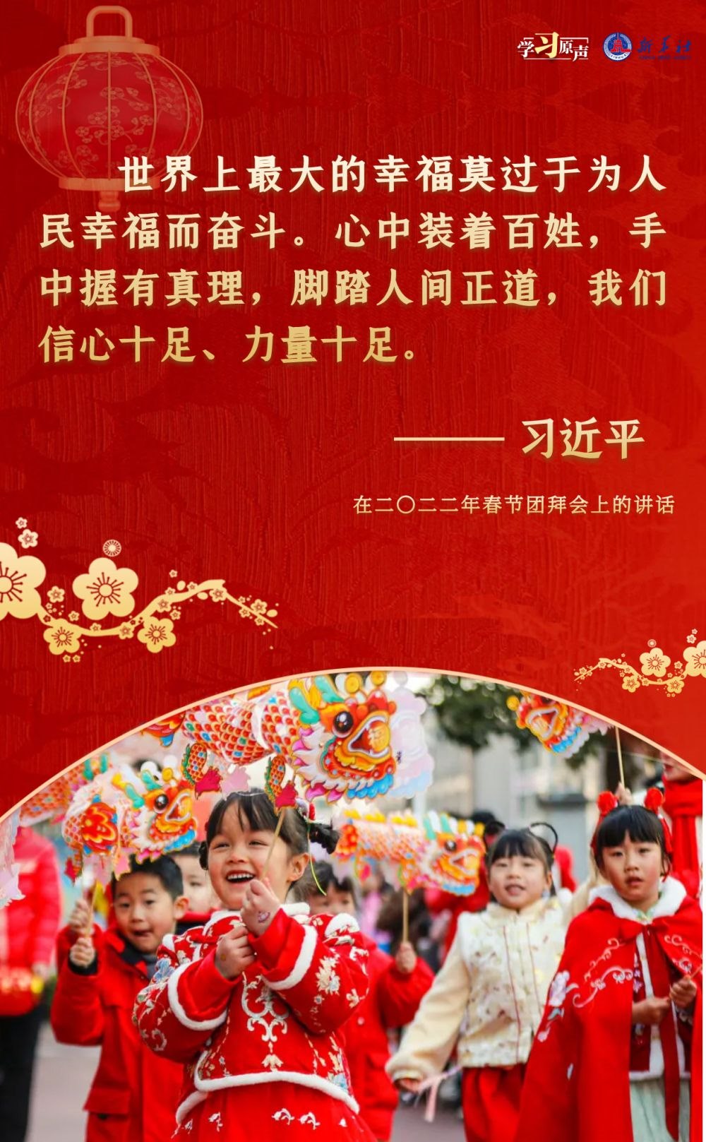 農(nóng)歷新年前夕,習近平總書記在春節(jié)團拜會上發(fā)表熱情洋溢的講話,辭舊歲、賀新春,送祝福、道真情??倳洔嘏辛Φ脑捳Z鼓舞人心,催人奮進,凝聚奮進新征程的磅礴力量。